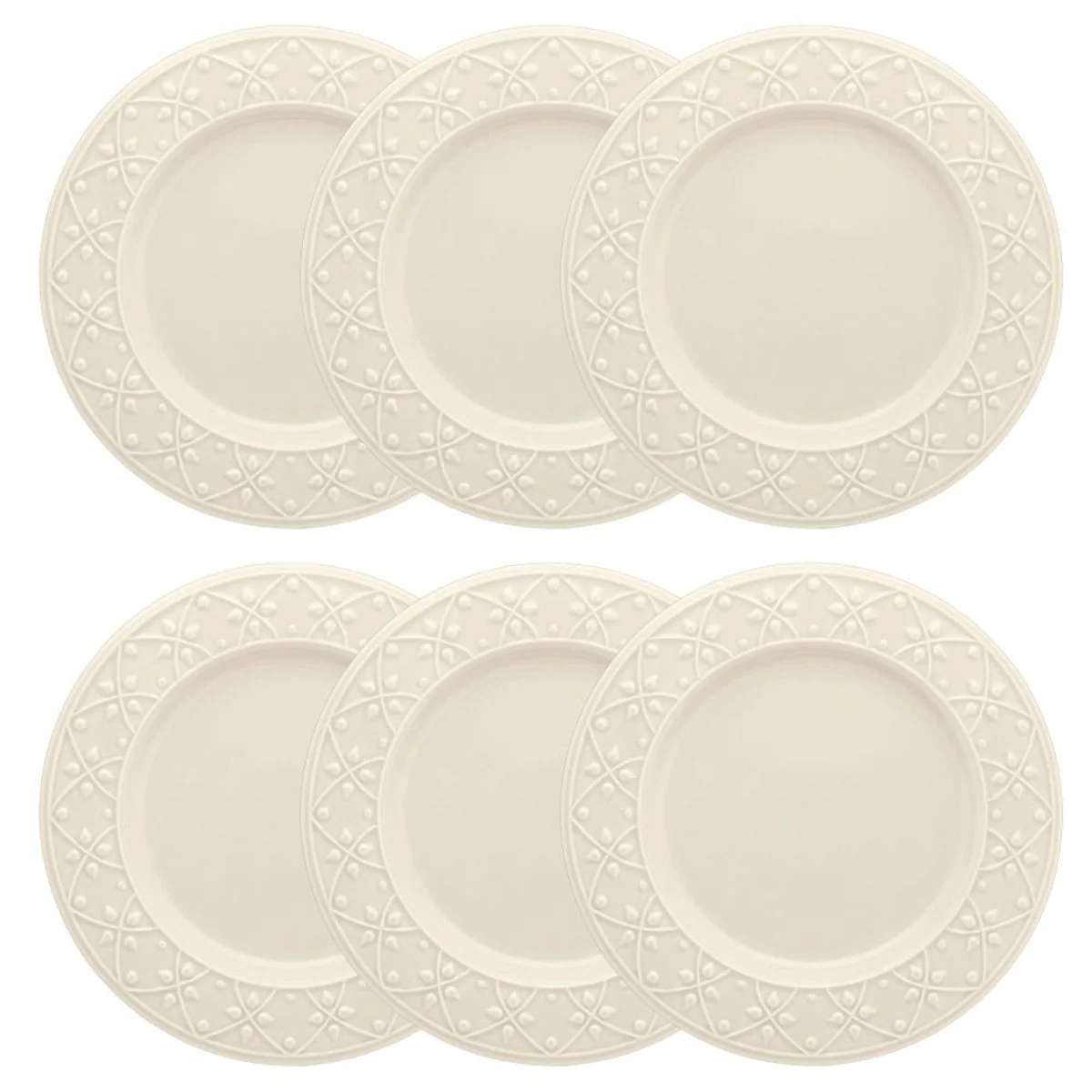 Conjunto elegante com 6 pratos rasos de 26 cm na linha Mendi, em tom marfim sofisticado. Perfeito para refeições diárias ou ocasiões especiais, estes pratos combinam funcionalidade com design clássico. Ideais para servir pratos principais com estilo e refinamento. Material durável que resiste ao uso frequente, garantindo beleza duradoura à sua mesa. Complemente seu jogo de louça com peças coordenadas da coleção Mendi.